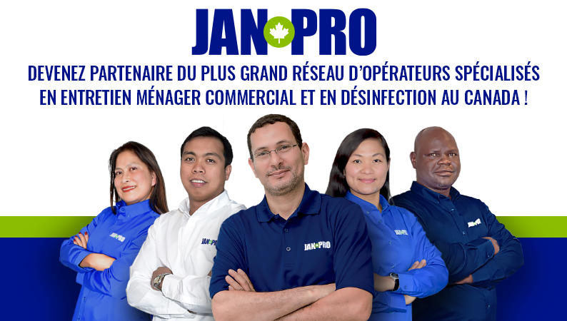 Jan-Pro est une entreprise spécialisée en entretien ménager commercial dont les interventions visent à nettoyer et assainir les espaces de travail, en appliquant des techniques perfectionnées et en utilisant des produits sécuritaires pour la santé et les biens matériels.